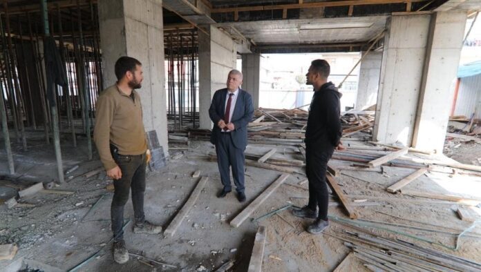 SAKARYA / Erenler- Yapımı devam eden Kütüphane ve Etüt Merkezi inşaat alanını ziyaret eden Erenler Belediye Başkanı Rahmi Şengül, “Tamamlandığında ilçemizin tek kütüphanesi olmakla birlikte birçok ilçemizden gençlerimiz ve öğrencilerimiz buradaki hizmetten istifade edecek” dedi.