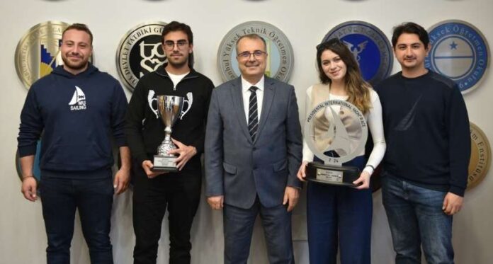 Rektör Prof. Dr. Mustafa Kurt, makamında bir araya geldiği MUSAILING ekibini başarılarından dolayı tebrik etti.