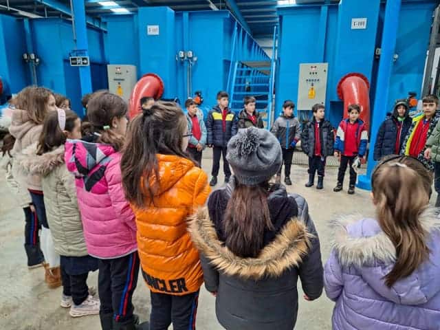 Sakarya Büyükşehir Belediyesi Su ve Kanalizasyon İdaresi (SASKİ), suyun kaynaktan musluğa ulaşma sürecini çocuklara aktarmak amacıyla eğitim ve gezi programlarını sürdürüyor. Bu kapsamda, Türk-İş İlkokulu 3. sınıf öğrencileri öğretmenleriyle birlikte Hızırilyas İçmesuyu Arıtma Tesisi’ni ziyaret etti.